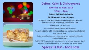 April 18 @ 12:00 pm - 3:00 pm at Petone Spiritualist ChurchPlease share our website details with